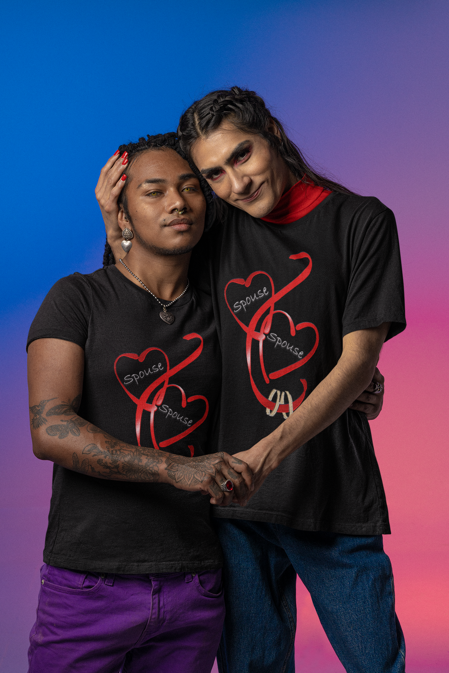 Hearts and Ribbon Wedding T-shirt - Spouse/Spouse (Red)