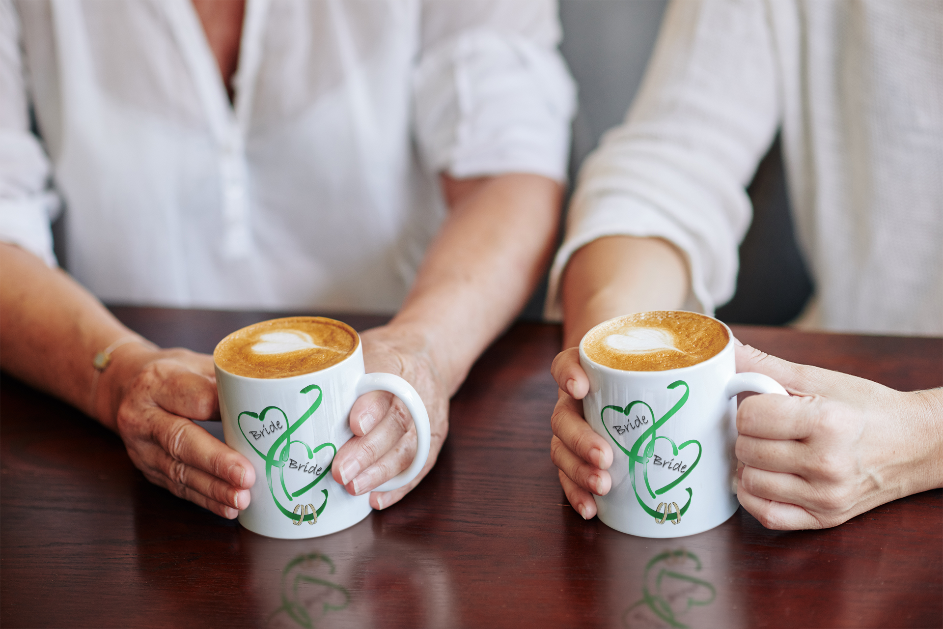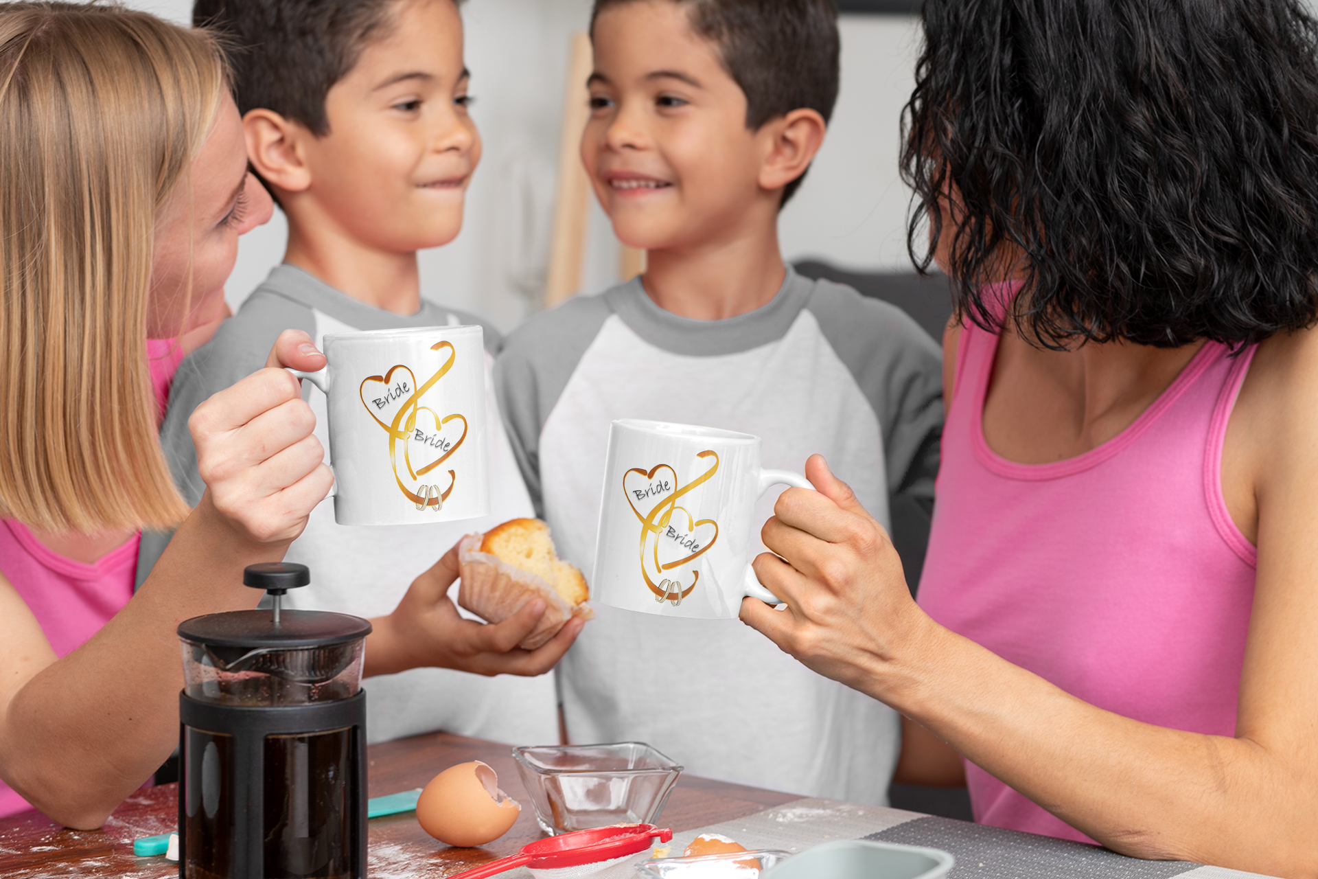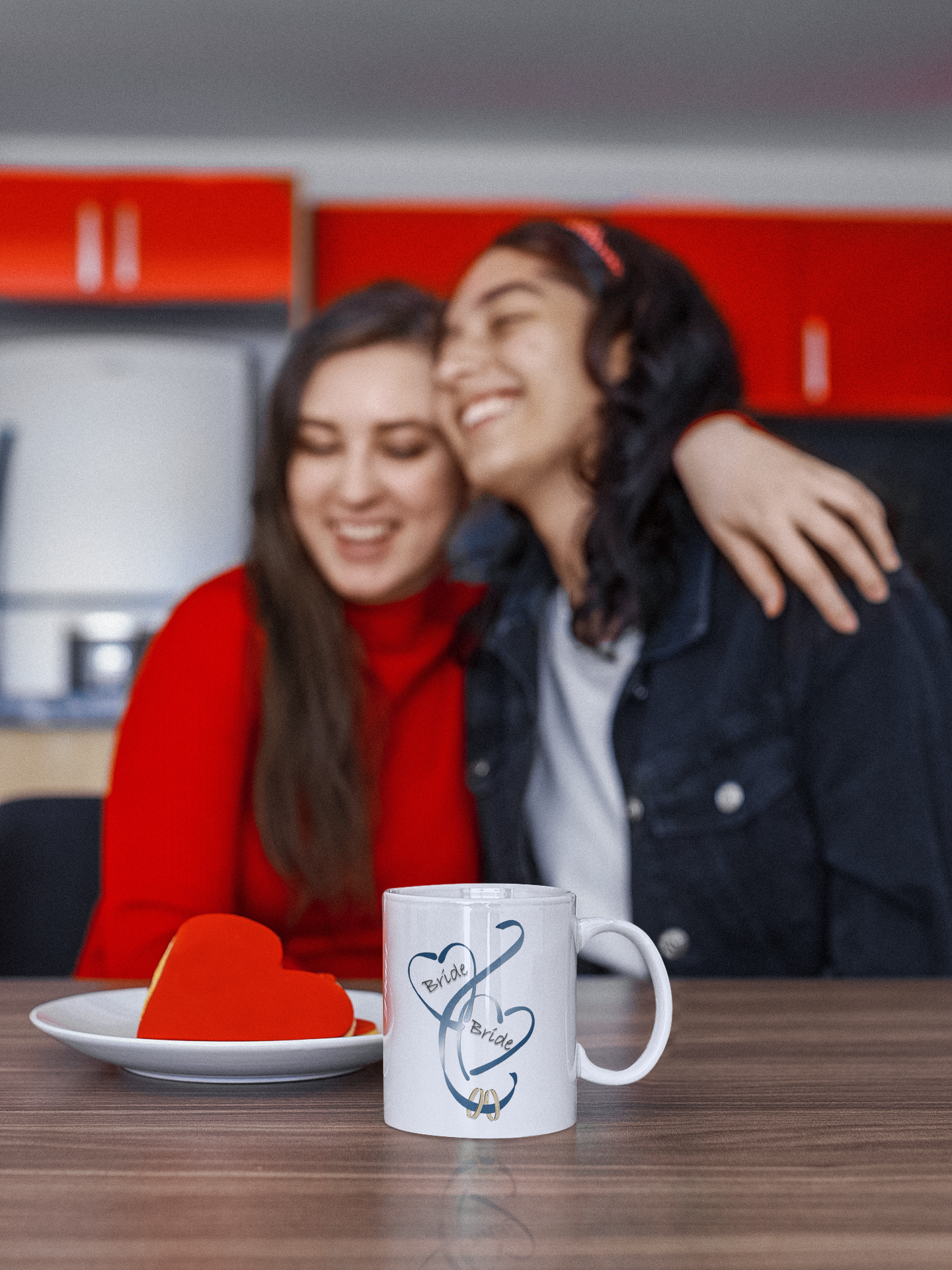 Hearts Ribbons & Rings 11oz White Mug (Bride/Bride)