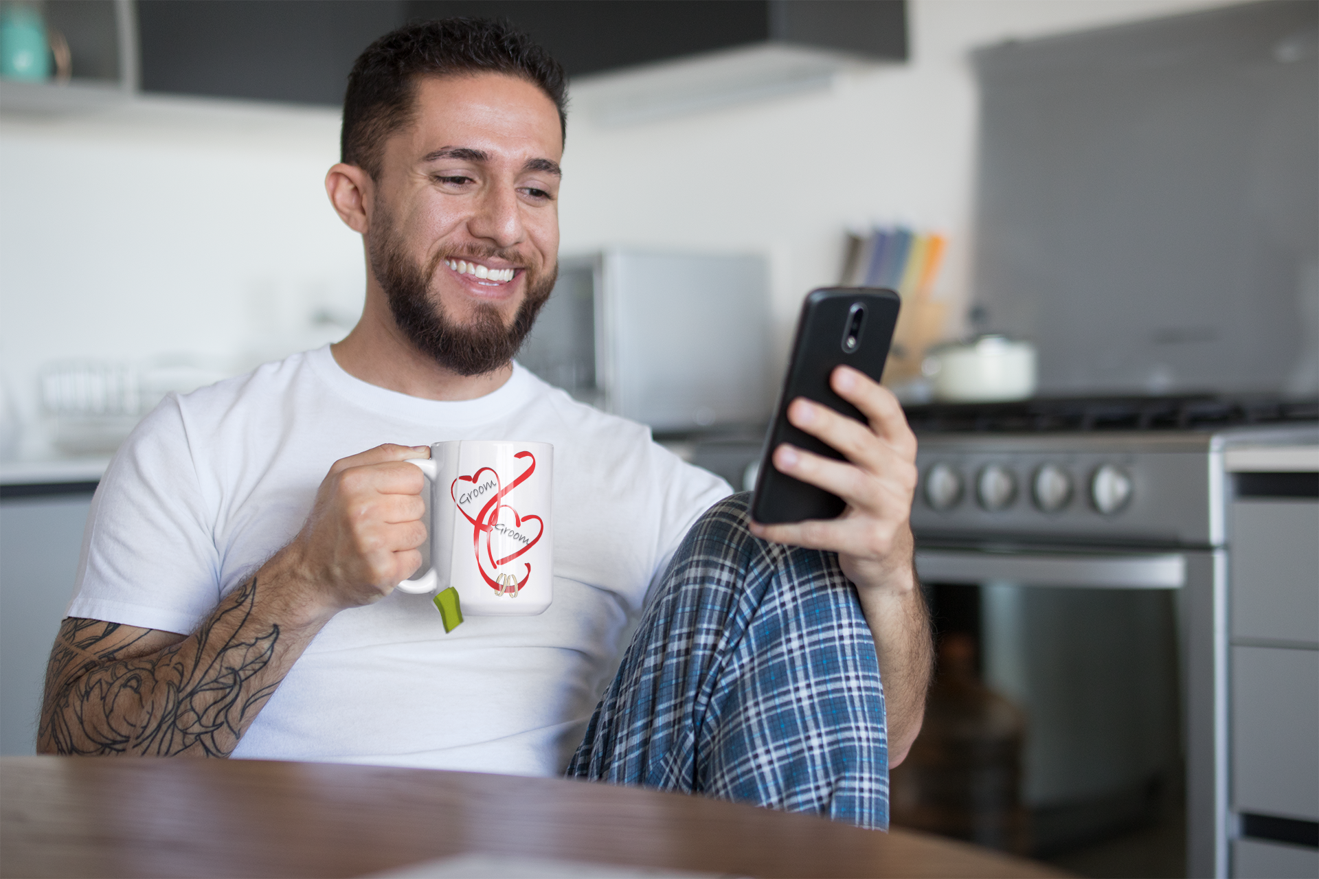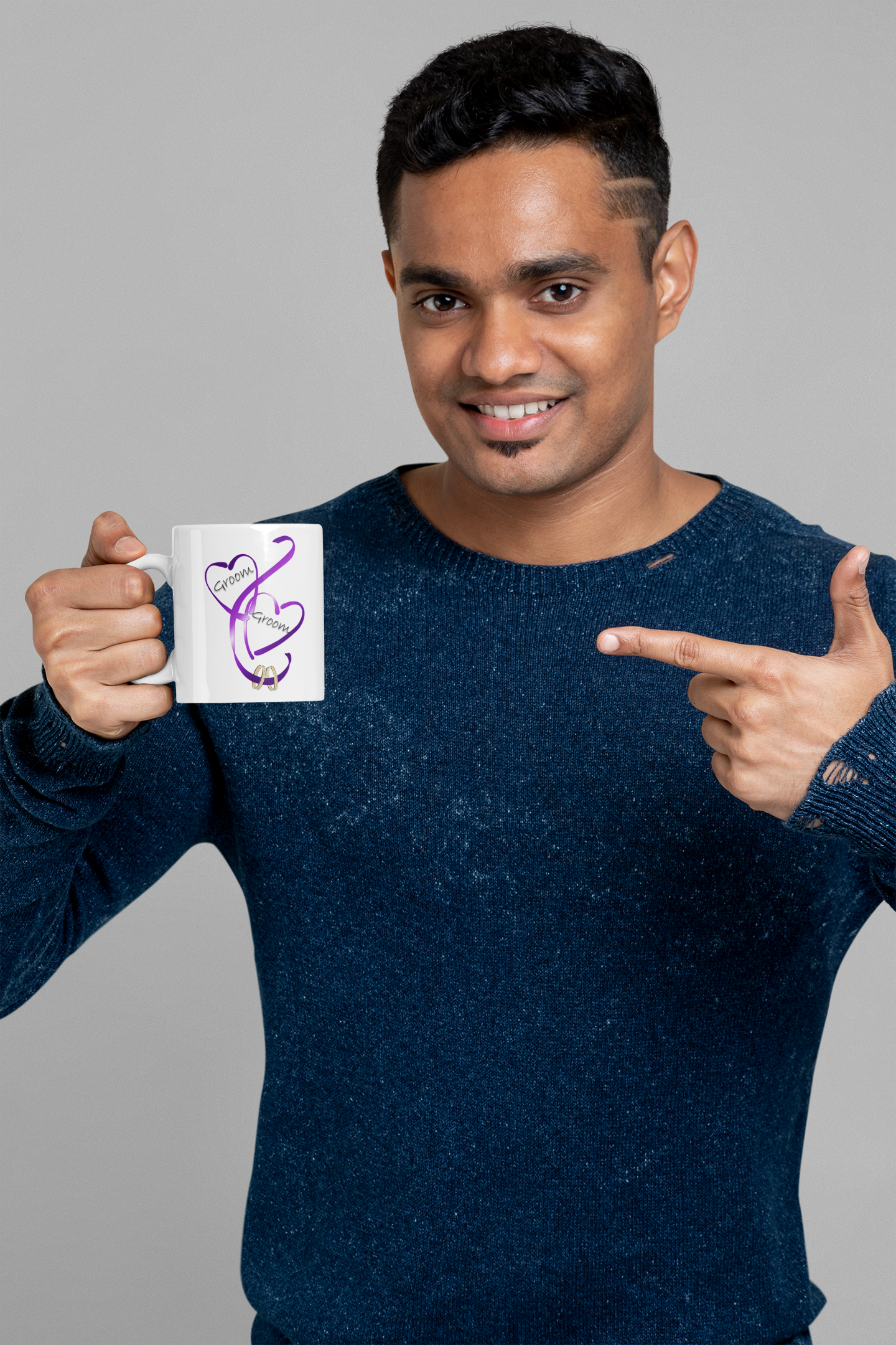 Hearts Ribbons & Rings 11oz White Mug (Groom/Groom)